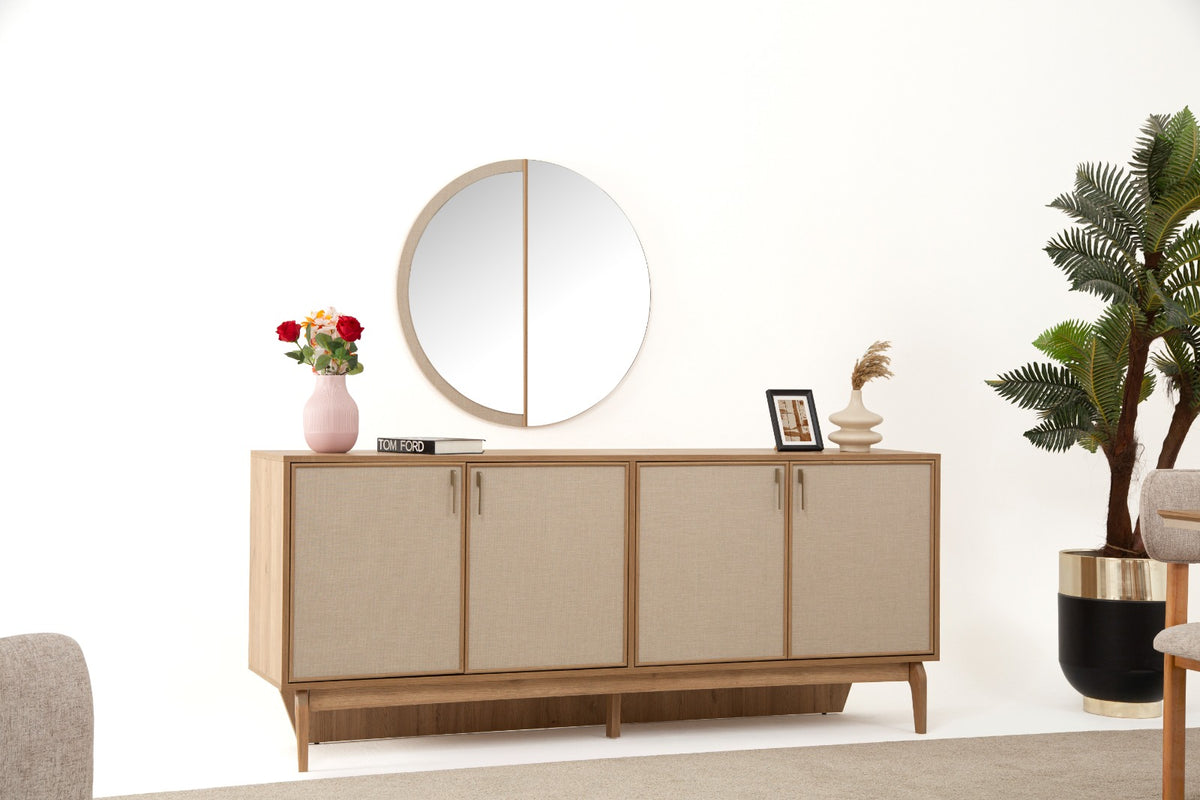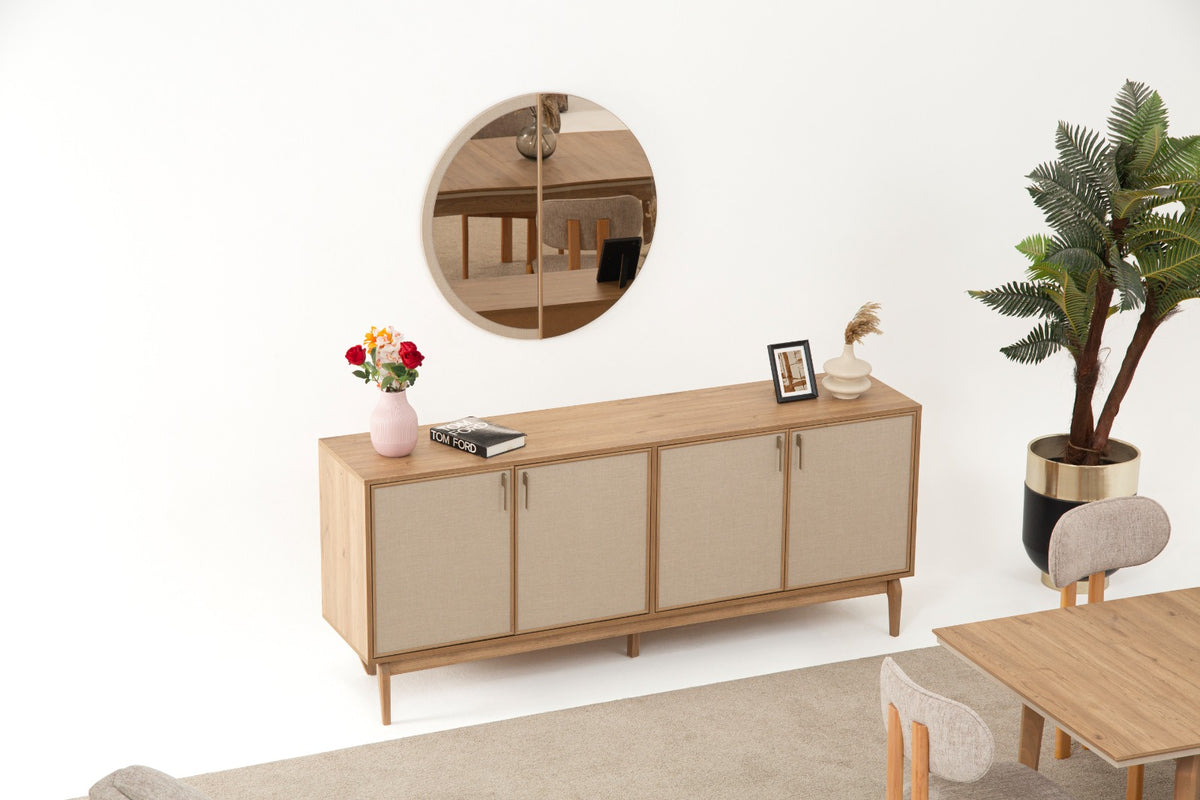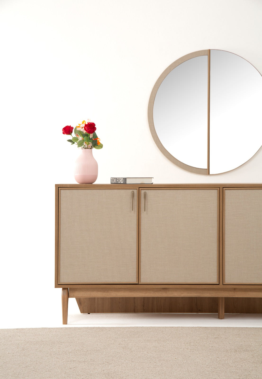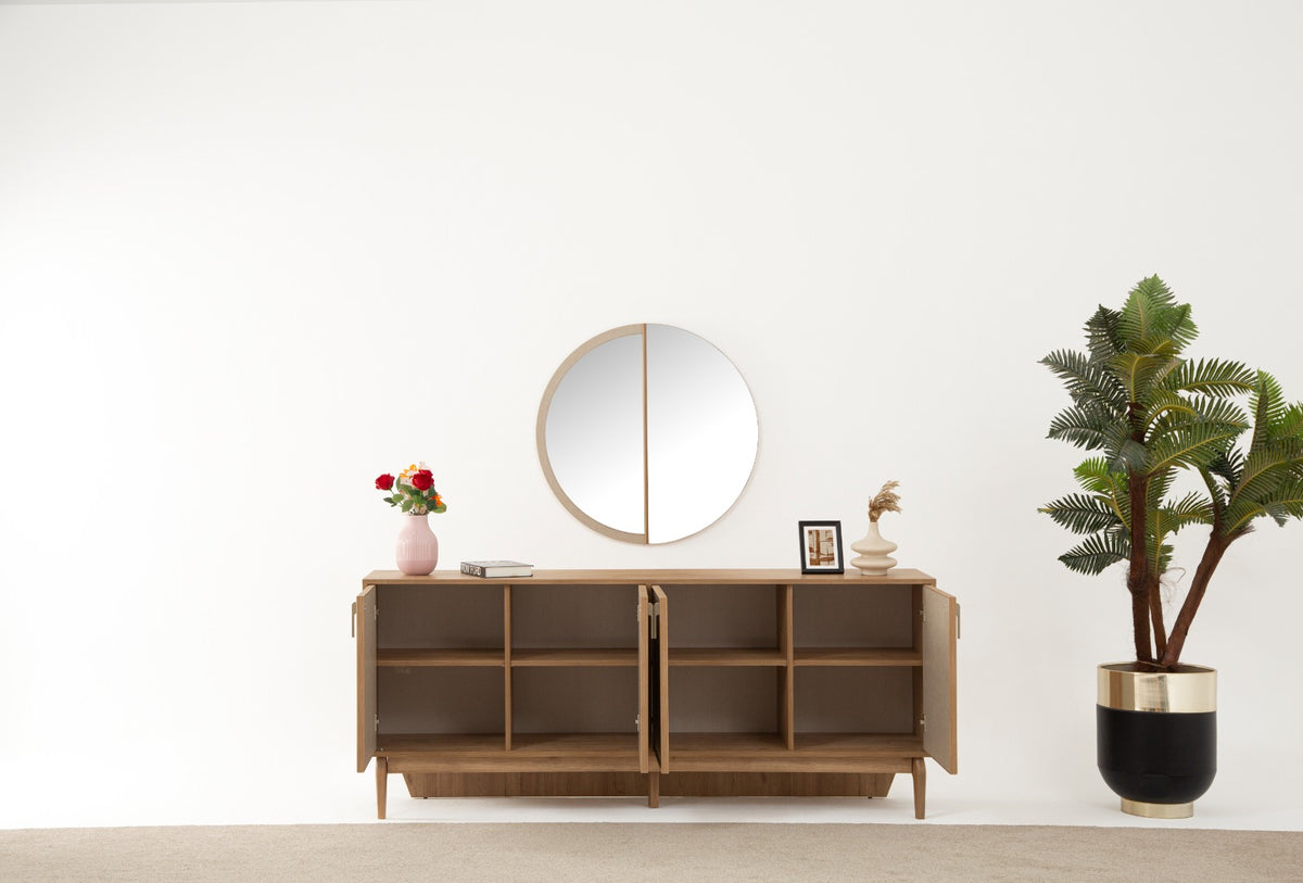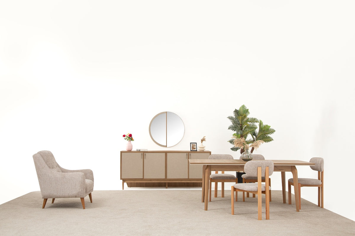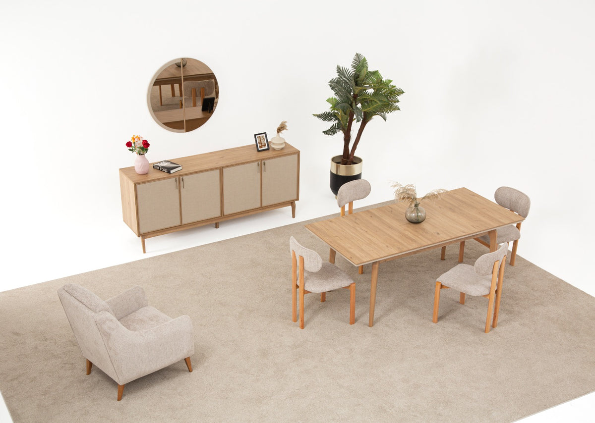 Takım İçeriği 1 Adet Konsol, 1 Adet Aynası, 1 Adet Yemek Masası ve 4 Adet Sandalye 'den oluşmaktadır.