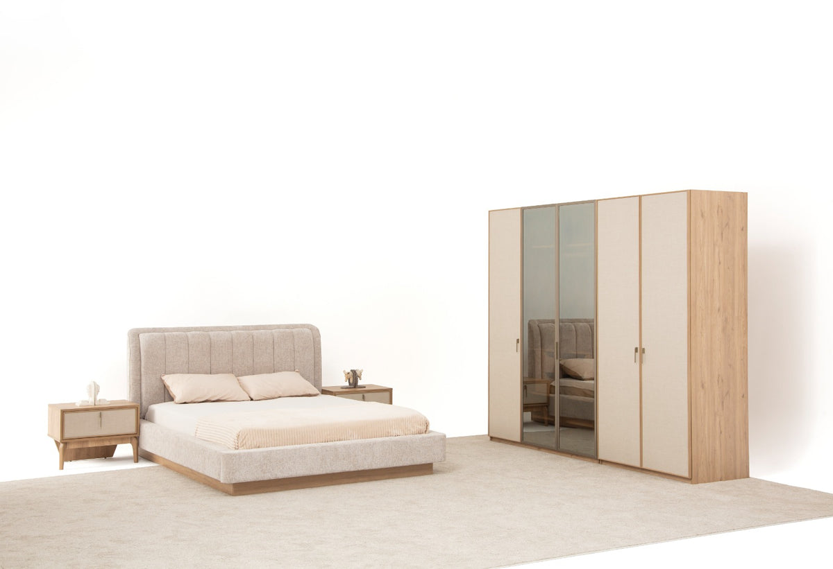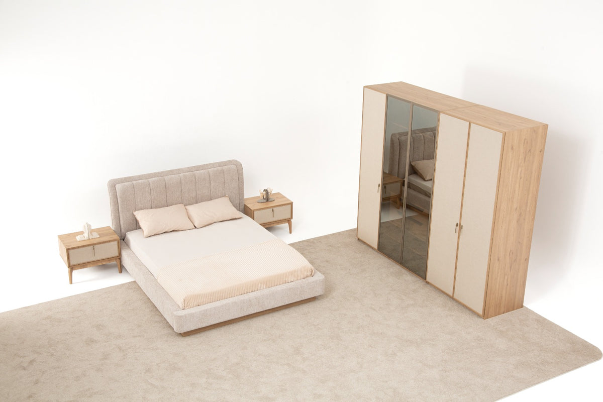 1 Adet Gardırop, 1 Adet Bazasız Karyola ve Başlığı, 1 Adet Şifonyer ve Aynası, 2 Adet Komodin ve 1 Adet Puftan oluşmaktadır.